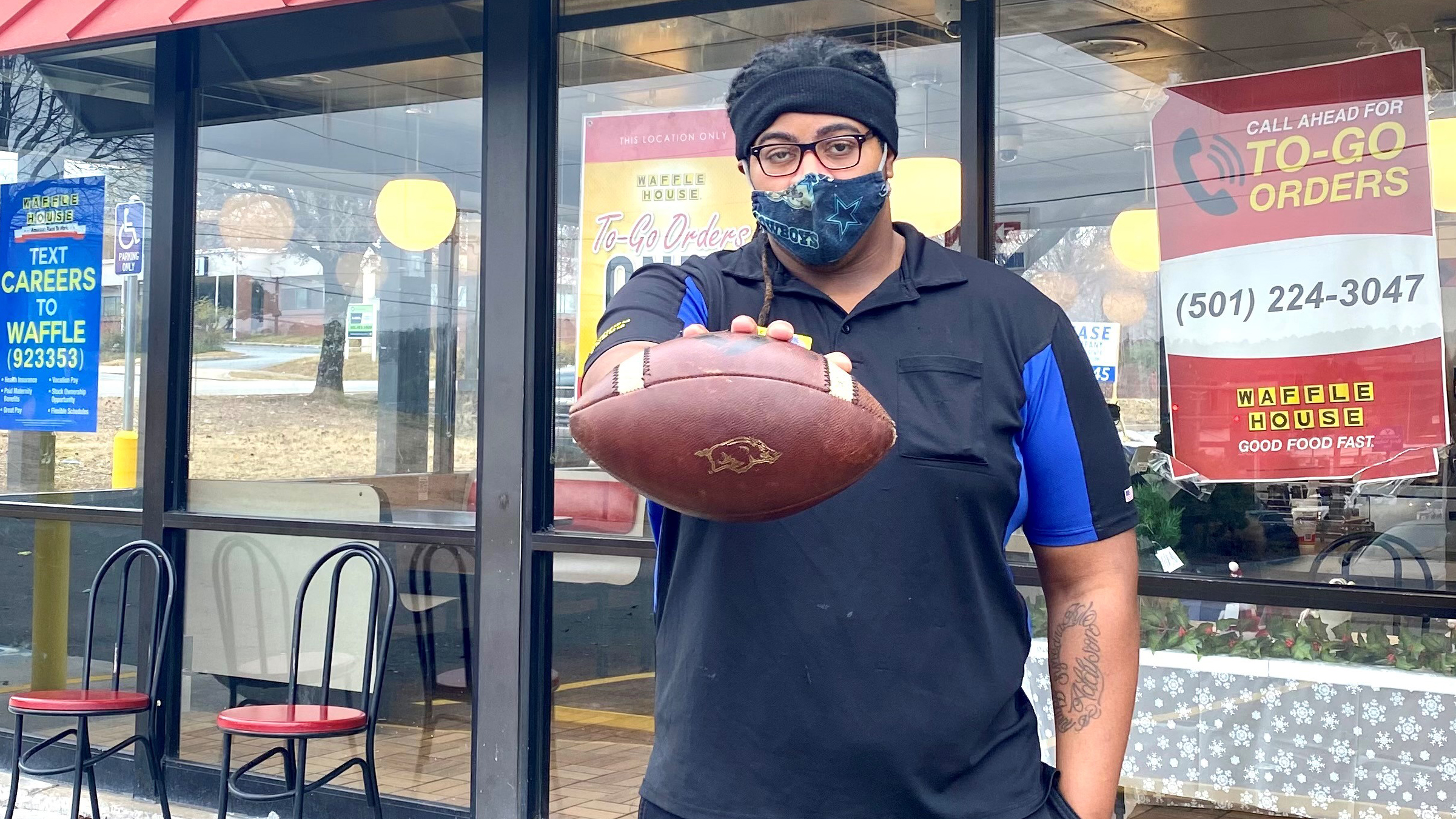 We caught up with former Arkansas football player Johnny Gibson to check on his transition into the working world with Waffle House.