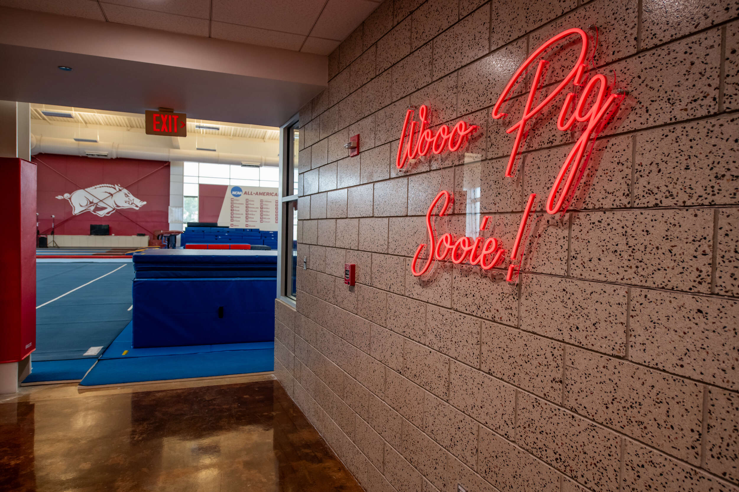 The Bev Lewis Center is a multi-million dollar facility and is home of the Razorback Gymnastics Team. The 15,000 square foot air-conditioned facility is considered one of the finest facilities in the country and includes a fully equipped training room, three foam pit areas, and other state of the art gymnastics equipment. The Bev Lewis Center for Women’s Athletics lives up to its name as the focus of the University of Arkansas’ female student-athletes.