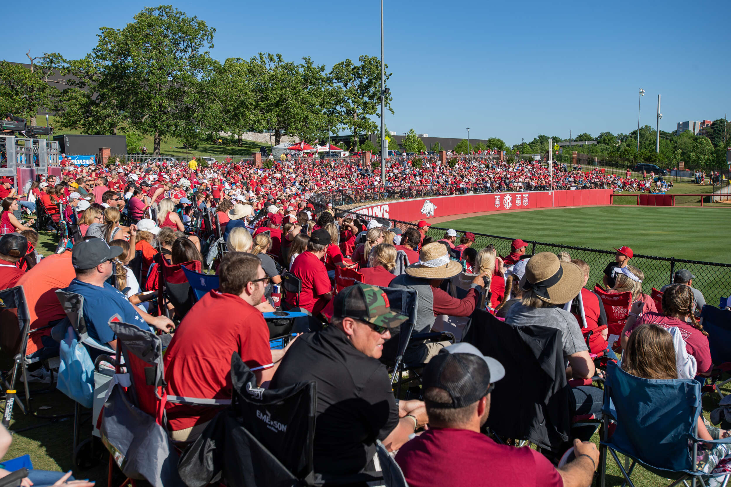 In 2025, Arkansas welcomed 78,586 fans through the gates of Bogle Park across 26 games for an average of 3,023 fans per contest. Arkansas once again ranked in the top three nationally in home attendance and average attendance. Bogle Park and Arkansas were one of three stadiums in the country to average over 3,000 fans per game, joining Alabama and Oklahoma. 2025 also saw Bogle Park host its fifth consecutive NCAA Regional and its first third NCAA Super Regional. Bogle Park welcomed its 500,000th fan through the gates in stadium history on May 3, 2025, during the Razorbacks’ season finale against No. 10 LSU. Bogle Park saw two of its Top 10 crowds all-time with 3,803 and 3,689 during the second and third games of the series against LSU (May 2-3), which were good for 7th and 8th on the all-time single-game attendance lists. Arkansas also had its 10th-longest crowd in program history on March 29, courtesy of 3,554 fans during game two of a three-game series with Kentucky.