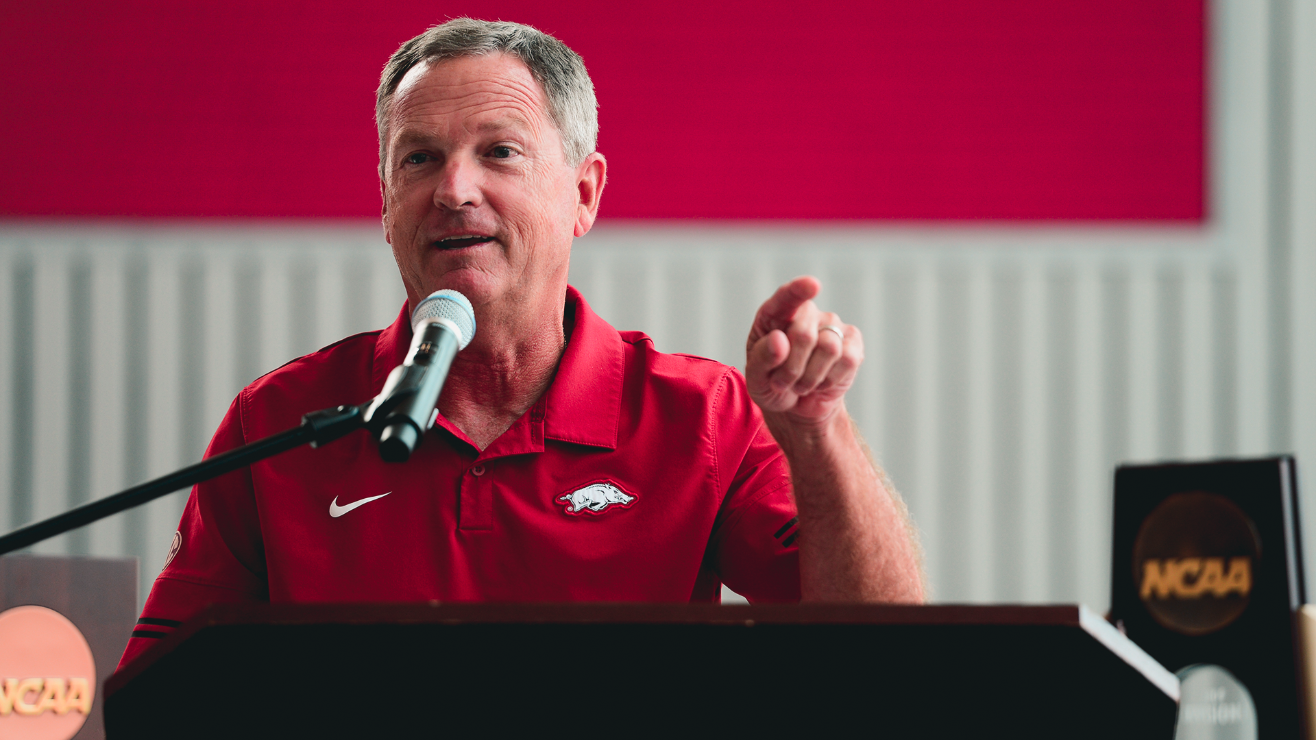 The Van Horn Hog, named in honor of legendary Arkansas Razorback Head Baseball Coach Dave Van Horn, is symbolic of the indomitable fighting spirit of the wild Razorback. The Razorback baseball program is nationally recognized as a skilled and spirited group possessing a fiery determination to prevail. The Van Horn Hog, donated by the Waldrip family, is dedicated to the legions of fans across Arkansas and the nation who share that same unwavering, fighting Razorback spirit.