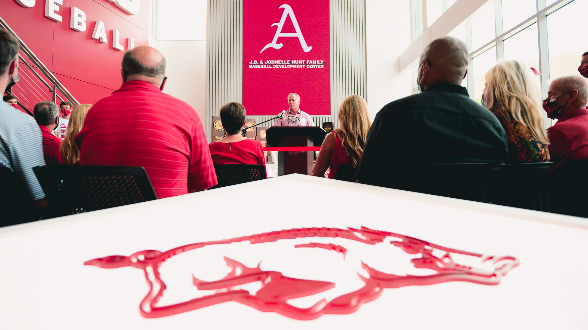 The J.B. & Johnelle Hunt Family Baseball Development Center is a 49,000-square foot baseball performance facility, providing student-athletes with an improved and expanded locker room, team meeting room, strength and conditioning center, training room, nutrition center, pitching and development lab and an in-venue batting tunnel.