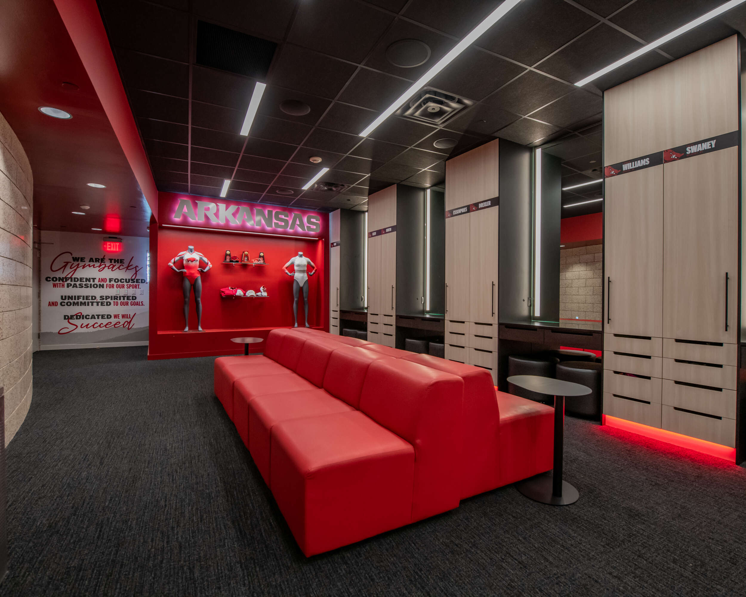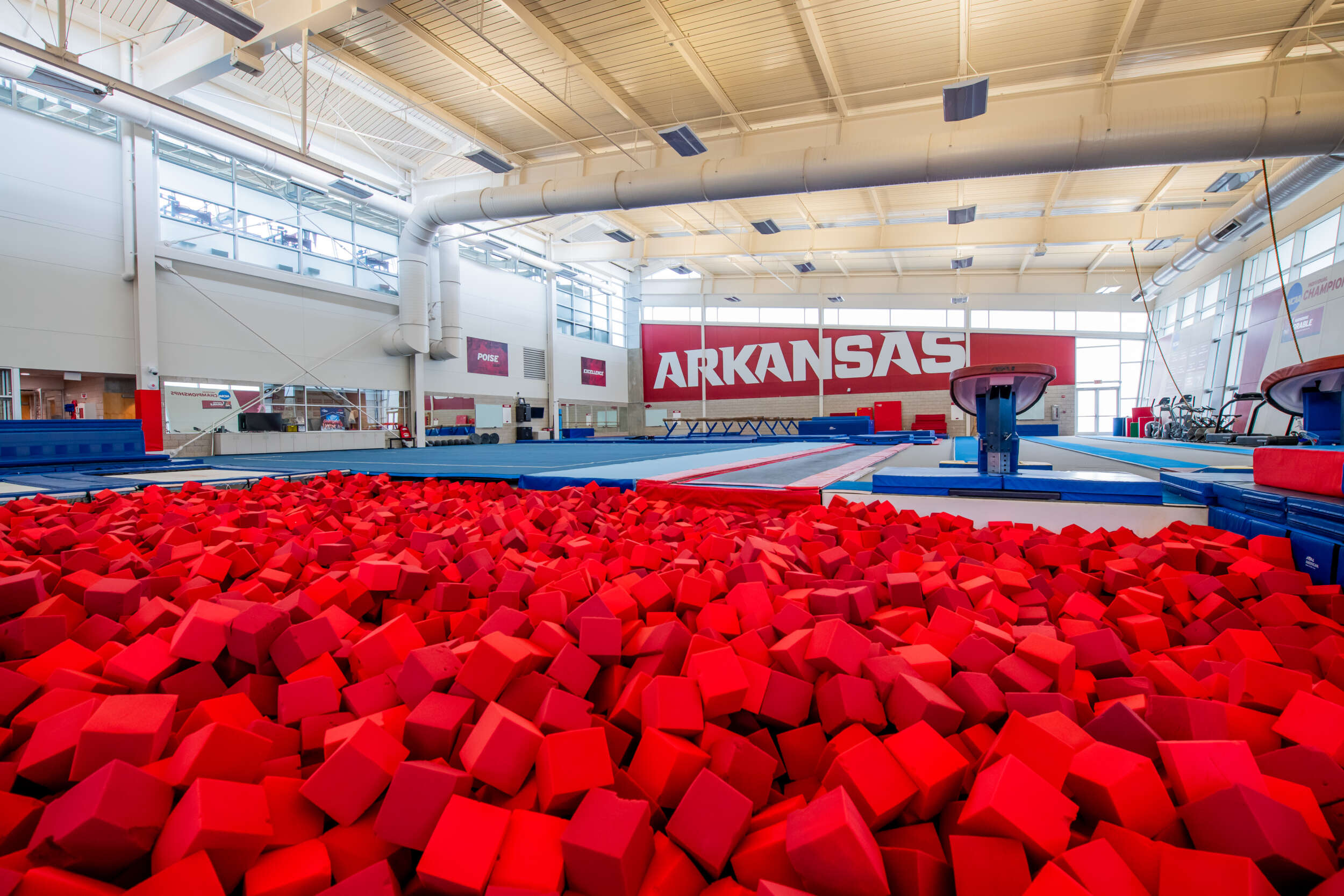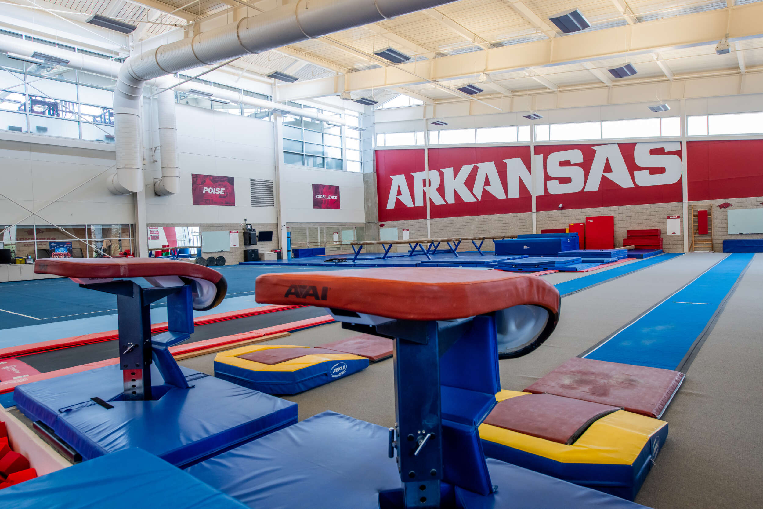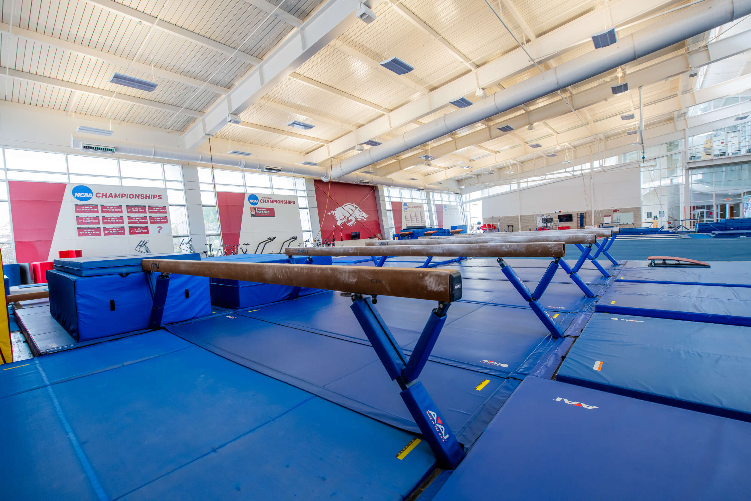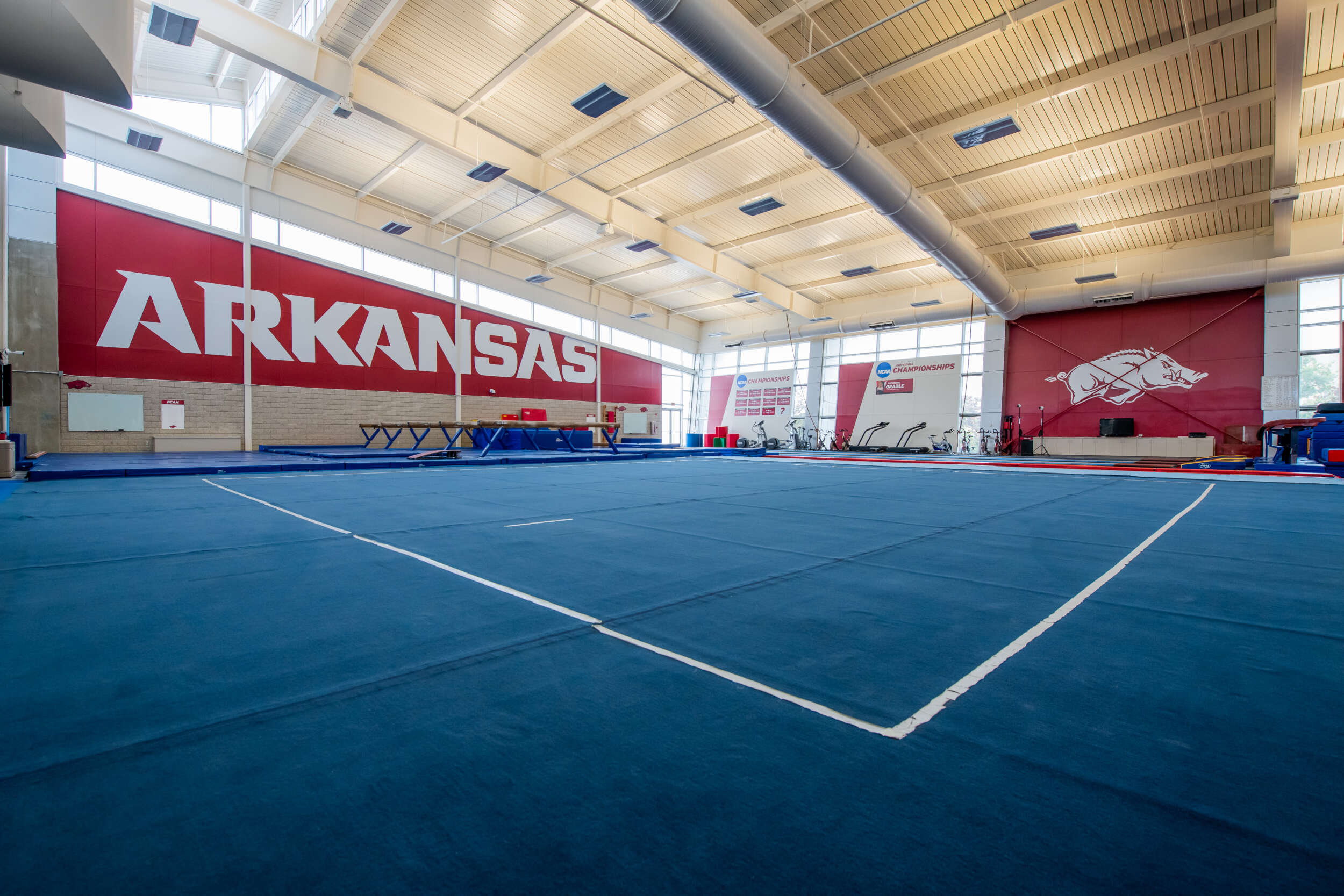 Located inside the Bev Lewis Center for Women’s Athletics, the Huntley Gymnastics Facility is a multi-million dollar facility and is home of the Razorback Gymnastics Team. The 15,000 square foot air-conditioned facility is considered one of the finest facilities in the country and includes a fully equipped training room, three foam pit areas, and other state of the art gymnastics equipment. The Bev Lewis Center for Women’s Athletics lives up to its name as the focus of the University of Arkansas’ female student-athletes.
