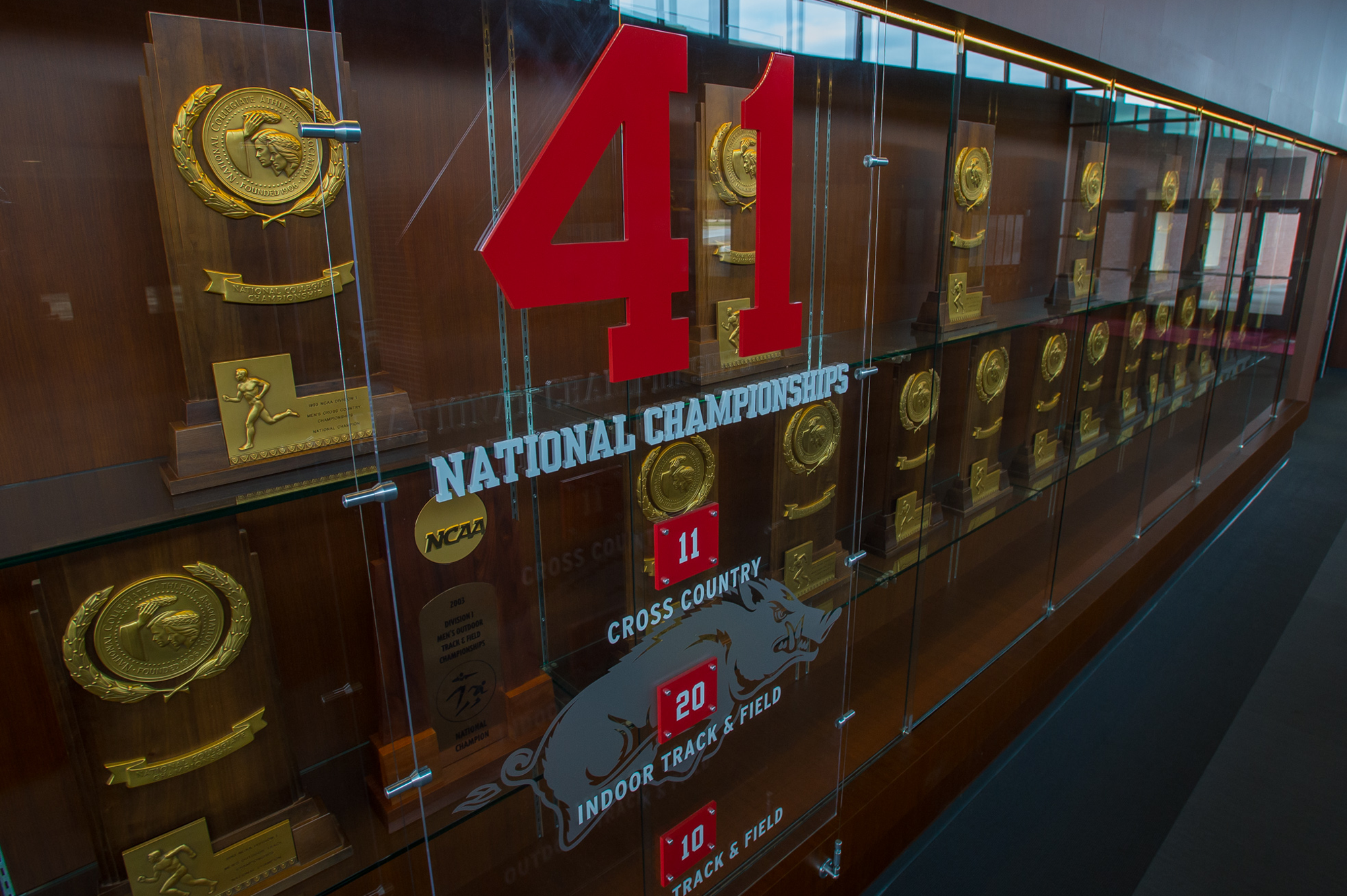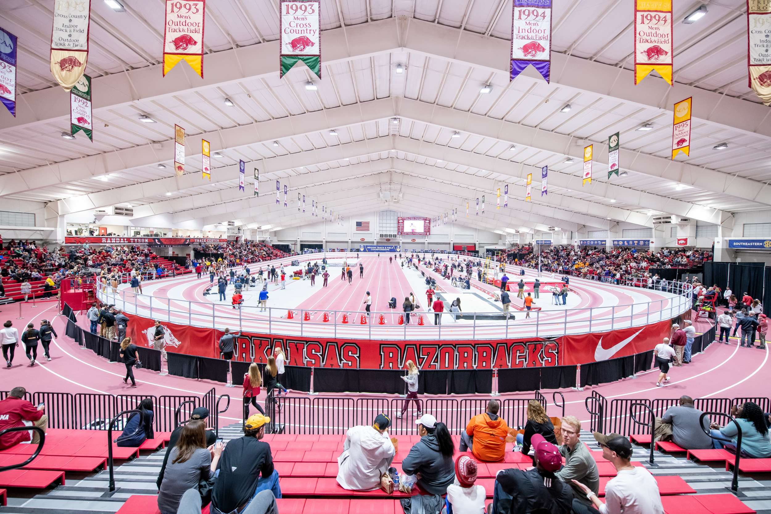Since opening, the Razorbacks’ $8 million home facility has played host to numerous world-class indoor meets, including nine SEC Championships—most recently, the 2019 indoor conference meet— and 12 NCAA Indoor Track and Field Championships.