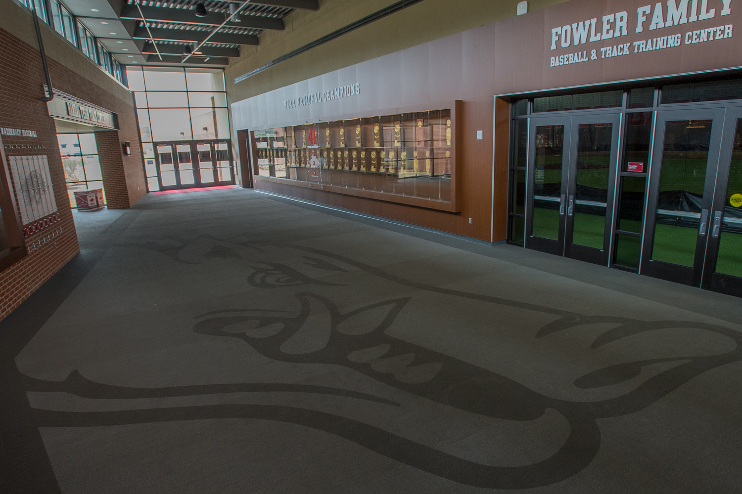The recently completed Fowler Family Baseball and Track Training Center provides an expansive check in and warm up area for track meets and will allow all indoor meet throwing events to be held on site.