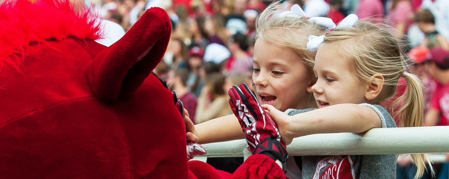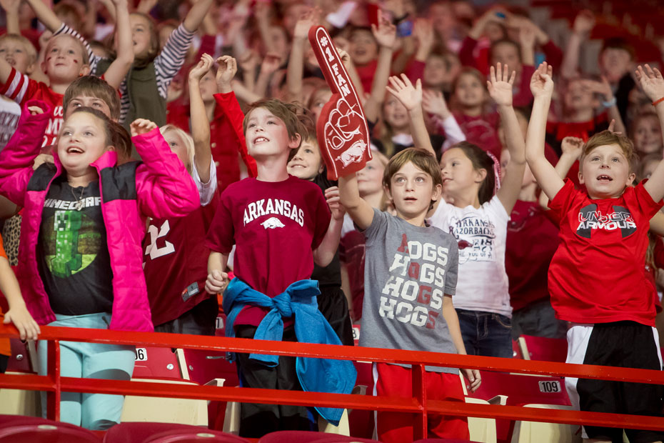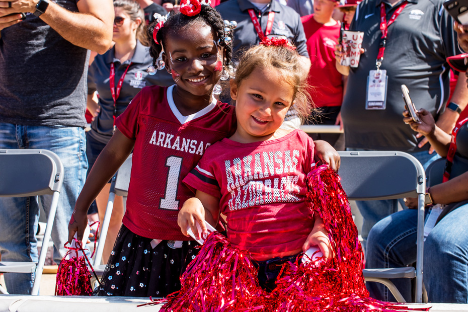 The Junior Razorbacks program, presented by the Arkansas Children’s Hospital, is open to newborns to 8th graders and seeks to foster a fun and exciting atmosphere for future Razorback fans at home athletic events while building positive relationships within the next generation of Arkansas fans.